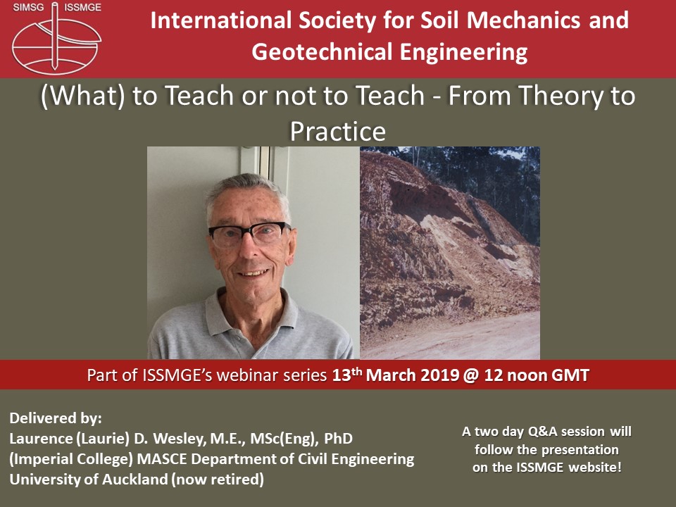 The ISSMGE is pleased to announce the delivery of the first course on unsaturated soils as part of the ISSMGE Virtual University program. This course is delivered by Prof. Delwyn G. Fredlund and is co...