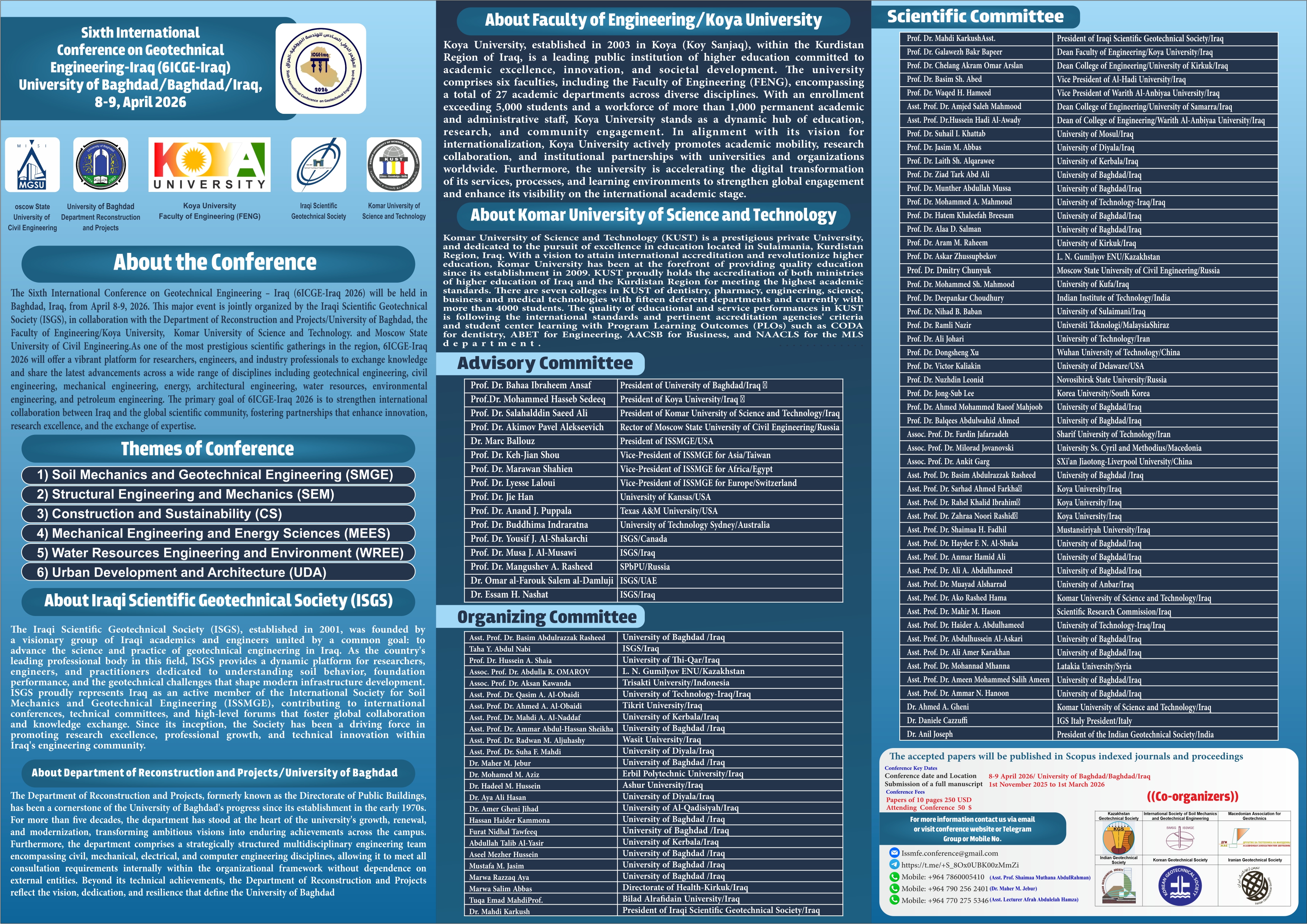 The Sixth International Conference on Geotechnical Engineering Iraq (6ICGE-Iraq 2026) will be held in Baghdad, Iraq, from April 89, 2026.