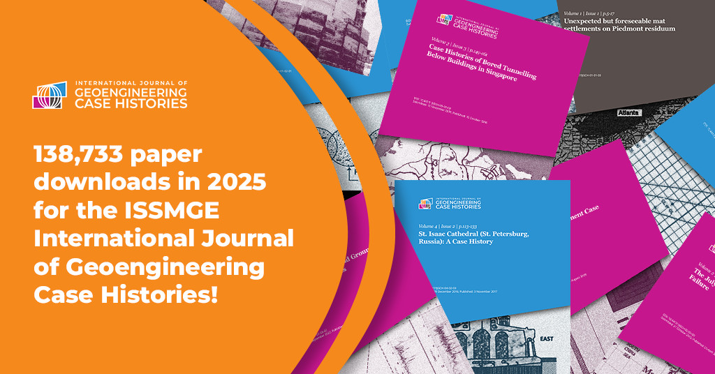 The ISSMGE International Journal of Geoengineering Case Histories is proud to announce that its papers were downloaded 138,733 times in 2025 (up 18.32% from 117,260 downloads in 2024).