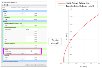 For more details, read Tensile behaviour in the Hoek-Brown model