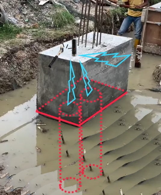 In this case, hitting the pile cap with the hammer will give you confusing results, as the echo of the hammer impact will come from multiple concrete edges.